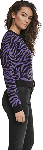Urban Classics Ladies Short Tiger Sweater Felpa, Multicolore (Blk/Pur 00040), Large Donna