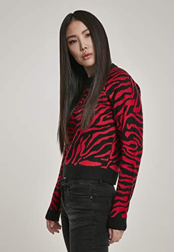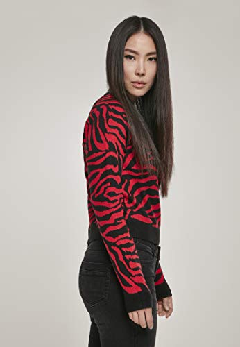 Urban Classics Ladies Short Tiger Sweater Felpa, Multicolore (Blk/Firered 00719), X-Small Donna