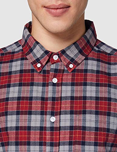 Urban Classics Plaid cotone Camicia da Uomo, Multicolore (Asfalto/Rosso), XXL