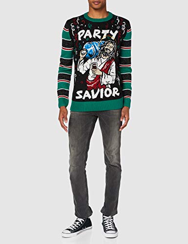 Urban Classics Savior Christmas Sweater Felpe, Nero/X-Masgreen, XL Unisex-Adulto