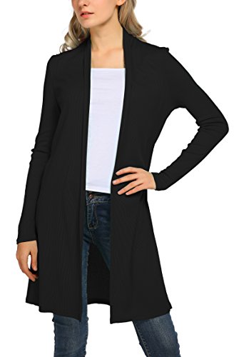 Urban GoCo Donna Cardigan Lungo Casual Fronte Apertura Giacca Tops (M, Nero)