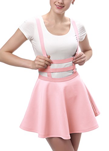Urban GoCo Donna Svasata Mini Gonna da Pattinatrice Elastica Gonna con Spallacci Rosa L