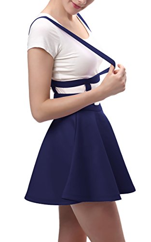 Urban GoCo Donna Svasata Mini Gonna da Pattinatrice Elastica Gonna con Spallacci Blu Marino S