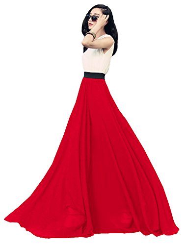 Urban GoCo Donne Casuali Gonna Lunga Abito Spiaggia Cocktail Gonna Maxi Chiffon Orlo Grande Rosso M