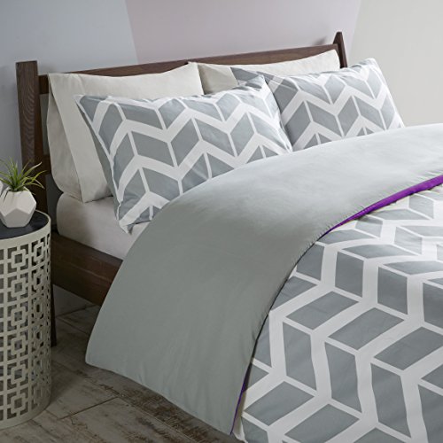 Urban Habitat Nadia Set di biancheria da letto Chevron, grigio, giallo, guarnizione in microfibra geometrica, bianco, letto singolo, letto matrimoniale, Grau-lila, 230x220cm+50x75cm