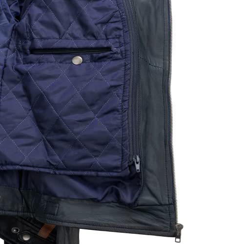 Urban Leather 58 LADIES | Giacca Moto Donna in Pelle con Protezioni Per Schiena, Spalle e Gomiti Omologate CE |Navy Blue| 2XL