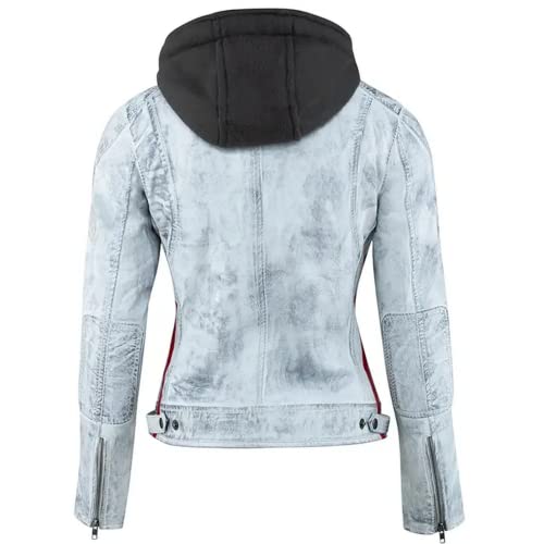 Urban Leather 58 LADIES | Giacca Moto Donna in Pelle con Protezioni Per Schiena, Spalle e Gomiti Omologate CE |Grigio Vintage| S