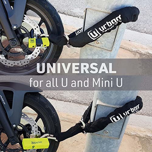 Con dimensioni totalmente universali e 120 cm / 47,24 pollici di lunghezza e un sistema ad anello che gli consente di circondare un lampione o un ancoraggio di sicurezza URBAN UR55. Compatibile con tutti i dispositivi antifurto omologati U o mini U come l'U75.