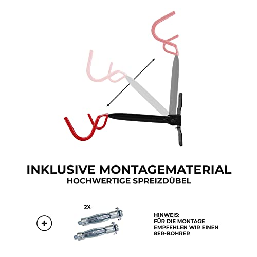 URBAN ZWEIRAD portabici da parete, da appendere, salvaspazio, pratico e pieghevole, gancio da parete per garage, montaggio a muro (Rosso)