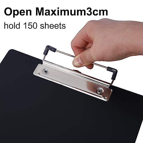 Dimensioni A4: la dimensione della cartella degli appunti è di 23 x 32 cm. La clip in metallo può ospitare carta standard A4 e contiene saldamente 80-100 fogli di carta formato A4 / lettera per proteggere i file importanti che volano intorno.