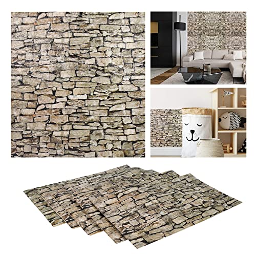 URCheers 10 pannelli da parete 3D, autoadesivi, effetto pietra, per bagno, balcone, cucina, 77 x 70 cm, colore naturale