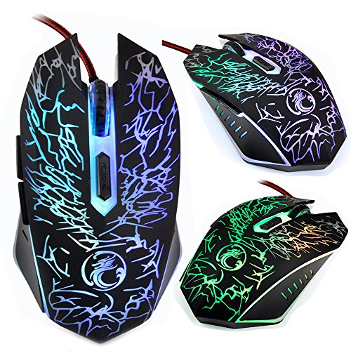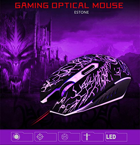 UrChoiceLtd Estone X5 Mouse Wired Muto Silenzioso 2400dpi 6 Pulsanti Ottico USB LED Mouse Colorato Glare Ergonomico PC Gioco Gamer Mouse Per Il Gioco Pro Notebook PC Del Computer Portatile (Nero)