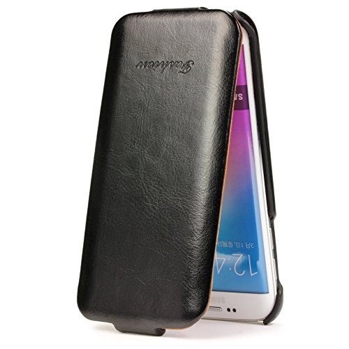 Urcover Custodia Compatibile con Samsung Galaxy S7 Edge Flip Case Ecopelle Vintage Wallet Case Ecopelle Custodia Portafoglio Cover Libro - Nero