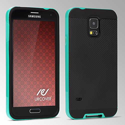 Urcover Custodia Galaxy S5, Hybrid Back Cover Effetto Carbonio Antiurto Bumper Shock-Absorption Slim Menta, Custodia Protettiva Samsung Galaxy S5