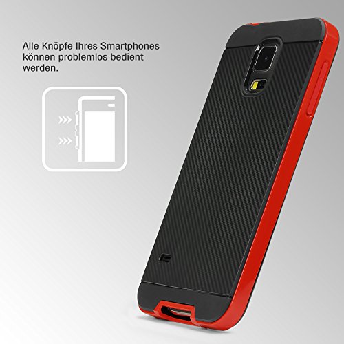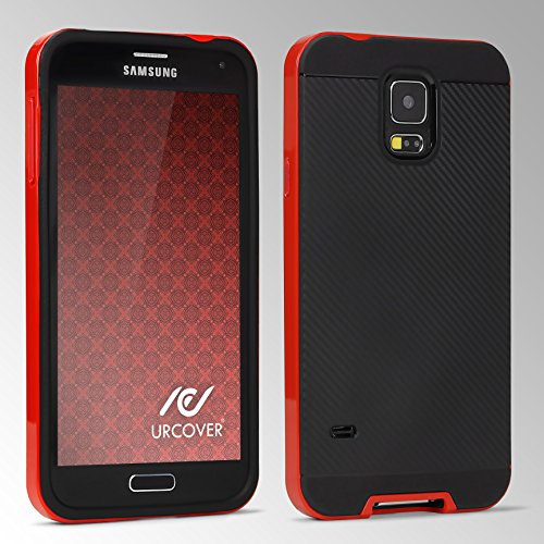 Urcover Custodia Galaxy S5, Hybrid Back Cover Effetto Carbonio Antiurto Bumper Shock-Absorption Slim Rosso, Custodia Protettiva Samsung Galaxy S5