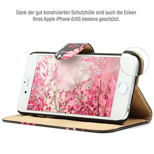 Urcover Custodia Portafoglio Wallet Apple iPhone 6 6s | Flip Cover con Porta Carte in Nero Fucsia | Scocca Rigida con Disegno Chic Glamour