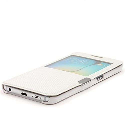 Urcover Custodia S-View Compatibile con Samsung Galaxy S6 Edge Wallet Case Portafoglio con Finestra, Chiusura Magnetica, Ultrasottile Cover Libro - Bianco