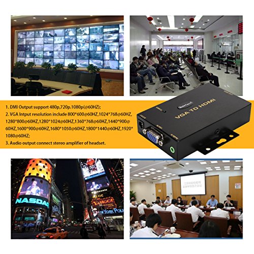 Ureru Convertitore Adattatore VGA a HDMI Supporto Plug And Play Versione HDMI 1.3 Rilevamento Automatico HDCP