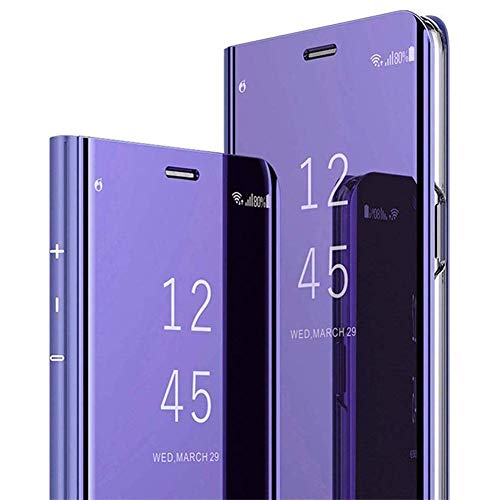 URFEDA Compatibile con Samsung Galaxy A51 Cover Flip Custodia Libro Pelle PU Cover Clear View Window Placca Specchietto Antiurto Case Glitter Custodia Specchio Kickstand Libretto Custodia,Viola