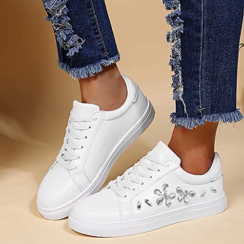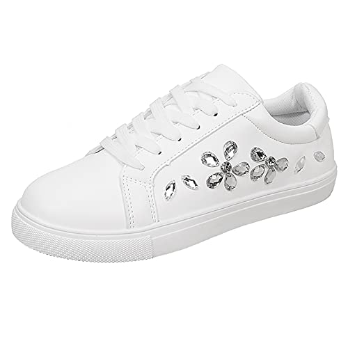 URIBAKY - Scarpe da ginnastica da donna, alla moda, con strass, con lacci, per sport e corsa, traspiranti e atletiche, bianco, 37 EU