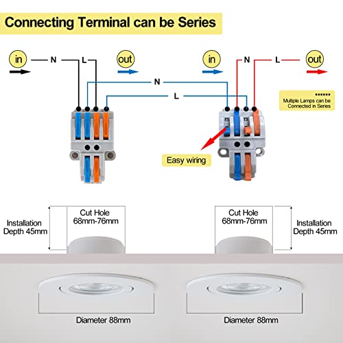 i terminali a 4 fori possono collegare più Faretti da Incasso a Luce in serie, basta usare i fili per il collegamento, non sono necessari più cavi. Adatto per cucina, soggiorno, camera da letto, sala da pranzo, bagno, corridoio o ufficio, sala riunioni, ecc.