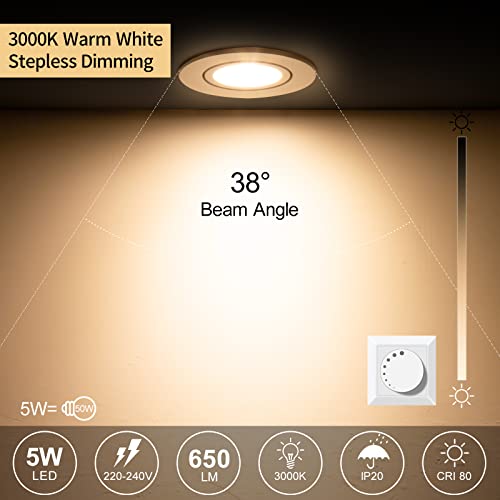 【Dimmerazione continua + angolo convergenza di 38°】: Faretti a Luce Led può essere attenuato da un dimmer rotante (non incluso), compatibile con la maggior parte dei dimmer a bordo d'uscita sul mercato. Con un design dell'obiettivo, c'è un angolo di convergenza di 38° per evitare la dispersione della luce, la luce è luminosa e morbida, senza sfarfallio, protezione degli occhi luminosa, creando una sensazione di sollevamento del soffitto e riducendo il senso di occlusione nella stanza.