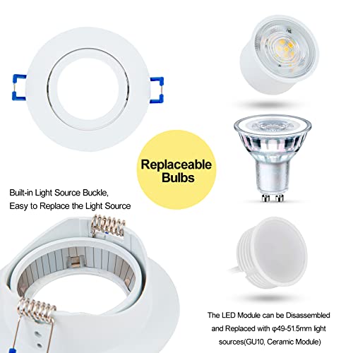 【Faretto da incasso a LED di alta qualità】: il faretto da incasso a LED ha una struttura orientabili di 60° e l'angolo della sorgente luminosa può essere regolato di ±30° per adattarsi a diverse condizioni di illuminazione. Guscio in alluminio bianco opaco di alta qualità, durevole ed elegante, il guscio isolante è resistente al calore, ignifugo, ad alta sicurezza, non facile da arrugginire e dura a lungo.