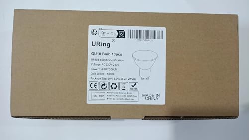 URing Lampadine LED GU10 4.8W, Bianca Freddo 6000K equivalenti 50W, Lampada GU10 LED 500LM, Spot GU10 non dimmerabile, angolo del fascio 120°, per Faretti da soffitto e Luce da incasso, 10 Pezzi