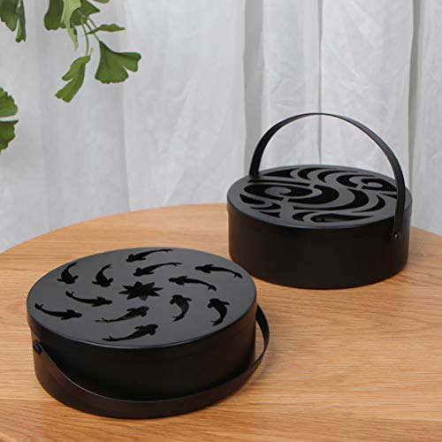 Urisgo Porta Spirali Antizanzare Bruciatore di incenso Tondo in Metallo con Coperchio e Maniglia Porta Bobina di Ferro per zanzare