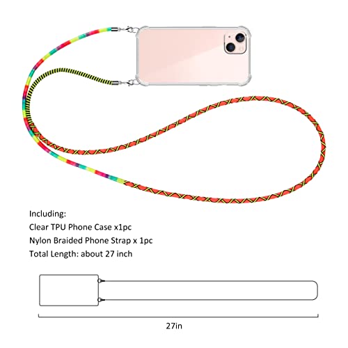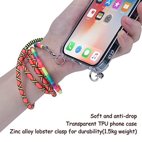 URIZONS Custodia con Cordino per iPhone 13 pro, Cover con Collana Practical Stylish, Trasparente Morbido Silicone Leggero Soft TPU Bumper Antiscivolo Case per Cellulare Girocollo (arcobaleno)