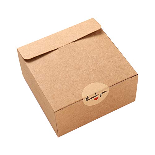 UR URLIFEHALL 30 scatole quadrate di carta kraft scatole per feste con 60 etichette adesive per parole di ringraziamento 8 x 8 x 4 cm