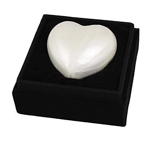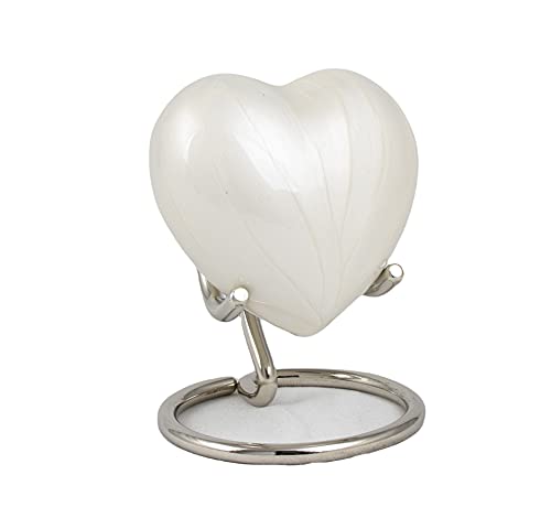 UrnsWithLove Piccola urna commemorativa in Alluminio a Forma di Cuore, per Ceneri con Coperchio Migliorato, Mini urna commemorativa a Forma di Cuore con Scatola e Supporto (Alluminio Bianco Perlato)
