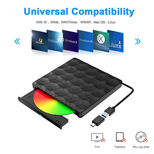 【Plug and Play】 il masterizzatore DVD esterno è plug and play, non è necessaria alcuna unità esterna o alimentazione aggiuntiva. Basta collegare l'unità DVD esterna / masterizzatore esterno alla porta USB 3.0, USB 2.0 o USB-C per riconoscere l'unità DVD esterna.