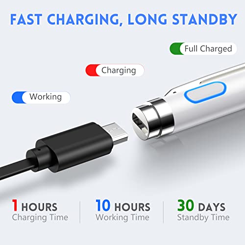 TEMPO DI LAVORO LUNGO - Lo penna ipad richiede solo 60 minuti per carica e può funzionare ininterrottamente per 8 ore. Il tempo di standby può raggiungere fino a 30 giorni. Dopo 30 minuti di inattività, lo stilo si spegne per risparmiare la carica della batteria.