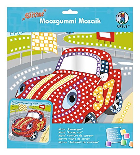 Ursus 8420007 - Muschio gomma mosaico immagine auto da corsa con glitter, 434 pezzi, colore: multicolore, Modelli/Colori Assortiti, 1 Pezzo