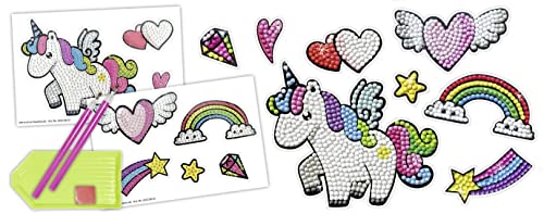 Ursus Diamond Painting, Unicorno, per Creare Scintillanti, 2 Fogli di Adesivi da 15 x 10 cm, con Diversi Disegni, Pietre di Diamante, Picker, Cera e Ciotola, Multicolore
