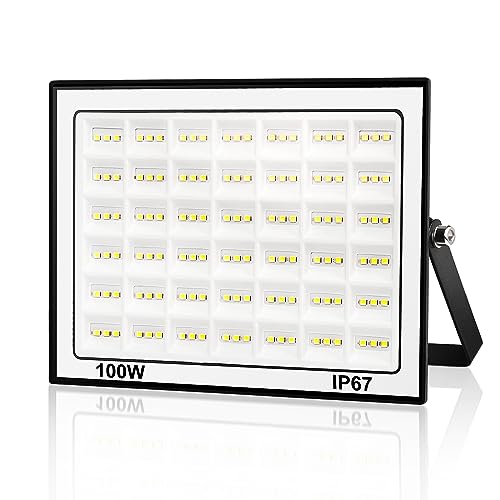 URTBST 100W Faretto LED da Esterno,10000LM Faro LED Esterno IP67 Impermeabile Faretti LED,7000K Faretti LED Esterno Bianca Fredda,Ultra Sottile Luce di Sicurezza Per Cortile,Giardino,Garage,Piazza