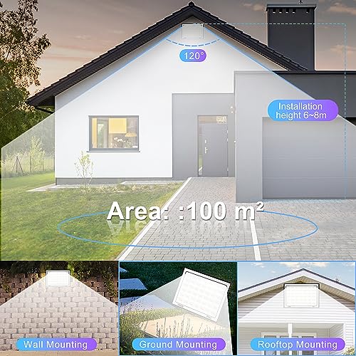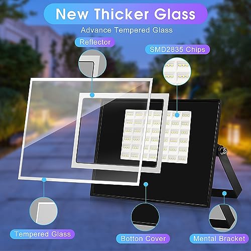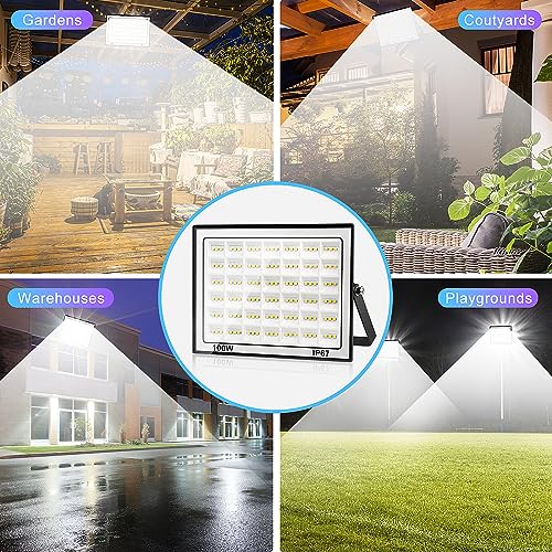 【Super luminoso 100W Faretto LED da Esterno】URTBST 100W Faretto LED da Esterno viene fornita con 126 perline LED ultra luminose,che producono fino a 10000 lm di luce bianca diurna 7000K ad alta luminosità.Risparmia oltre l'85% di elettricità rispetto alle tradizionali luci alogene per esterni,quindi non devi preoccuparti di bollette elettriche elevate più.