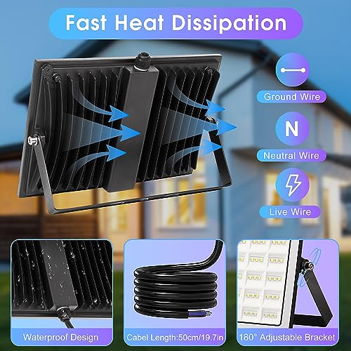 【Efficiente dissipazione del calore & Lunga durata】URTBST 100W faretti led esterno sono progettate con un efficiente design del dissipatore di calore a pinna e materiale in alluminio per garantire prestazioni di lunga durata e un'eccellente dissipazione del calore.L'innovativa dissipazione del calore può prolungare la durata del LED a oltre 50,000 ore.