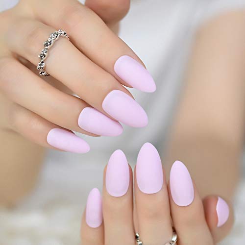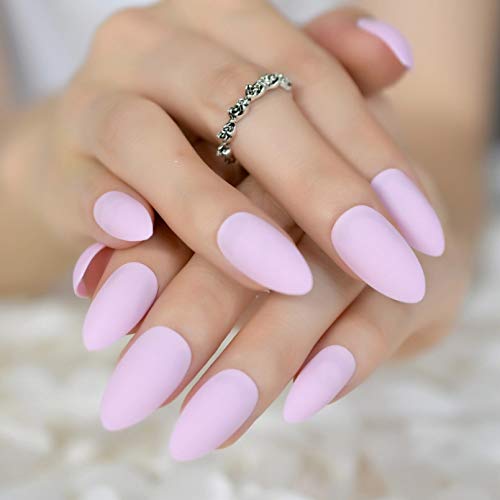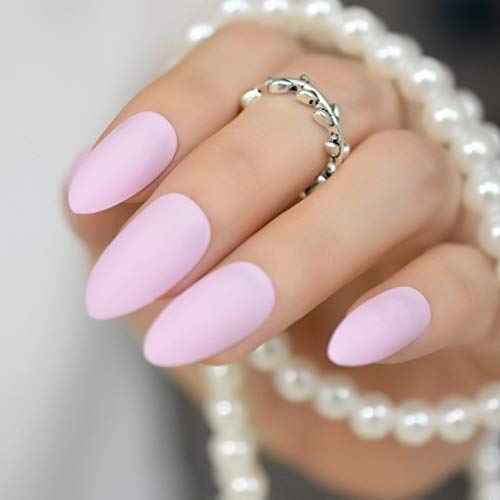 URTJSDG Unghie Finte Matte Soft Pink Stiletto Unghie Finte Mandorla A Punta Stampa su Ovale Smerigliato Copertura Completa False Nail Art Tips