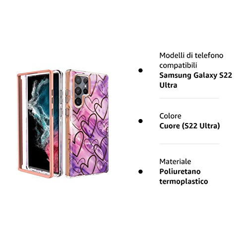 URZQOQ Samsung S22 Ultra Cover con Bumper [SENZA Protezione Schermo] Cover Galaxy S22 Ultra [Resistente sbiadimento] Fantasia Lucida Antigraffio in TPU Cover Samsung S22 Ultra (6,8 Pollici) Cuore