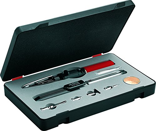 Fornito con saldatore 060/100, ugello di ricambio, cappuccio di protezione, 4 diverse punte e rocchetto stagno 60/40 con antiossidante