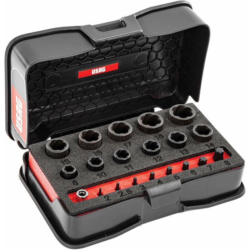Abbinando le bussole elicoidali 458 B per dadi e bulloni esagonali agli inserti 458 E per viti con esagono incassato, si ottiene il kit Universale disponibile sul mercato. Con questo kit puoi svitare viti e dadi anche molto danneggiati, senza forare o utilizzare altri estrattori.