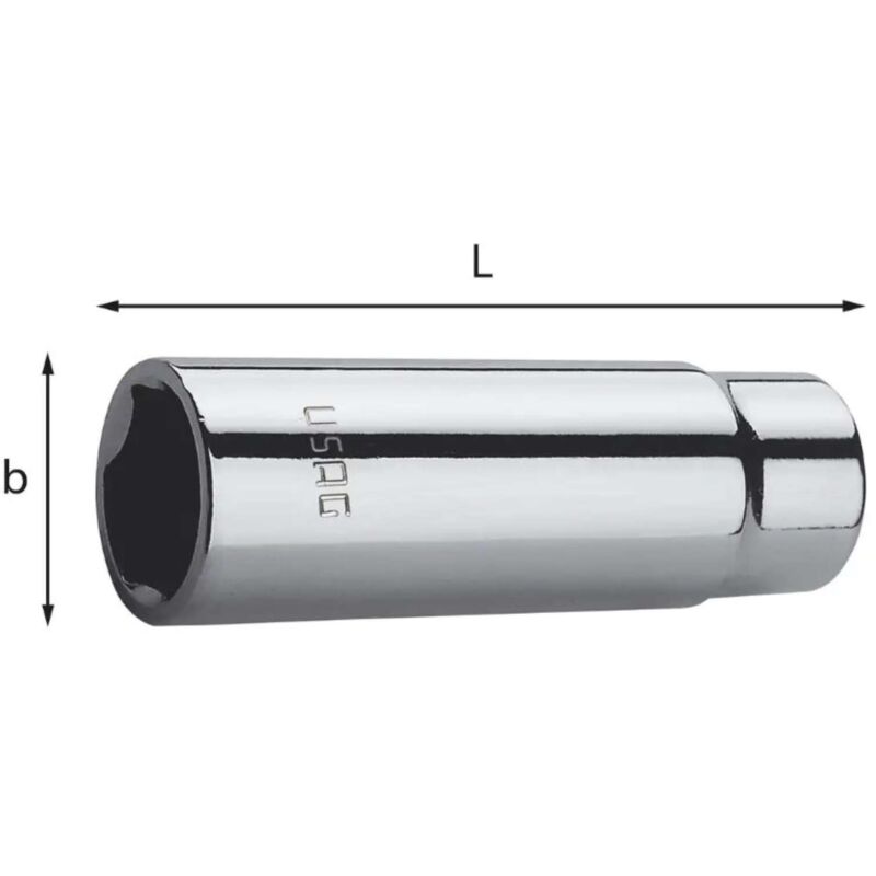 Chiavi a bussola lunghe bocca esagonale - 235 3/8 ELN Usag ISO 2725-1 Acciaio speciale altamente legato al Cromo Molibdeno Esecuzione cromata Codice Bocca esagonale mm b mm L mm Q.tà x conf. U02351313 15 20,4 53 2