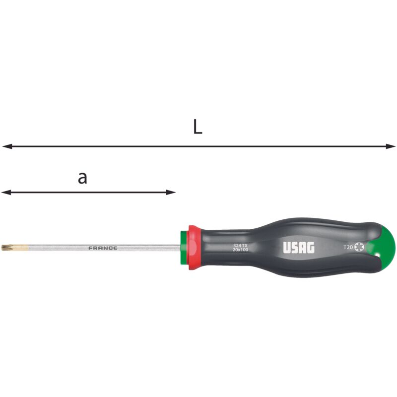 GIRAVITI PER VITI CON IMPRONTA TORX® • Punta zincata che garantisce un'elevata resistenza all'usura ed alla corrosione • Profilo TORX® ottimizzato per adattarsi perfettamente alla vite ed aumentare la trasmissione della coppia • Lama in acciaio al Cromo Silicio Vanadio per un'ottima resistenza alla flessione • Impugnatura ergonomica trimateriale con rivestimento soft grip, resistente ad oli ed agenti chimici • Codice colore sull'impugnatura per distinguere le diverse impronte Codice n°xa L mm Misura impugnatura U03240476 T15x75 184 M2