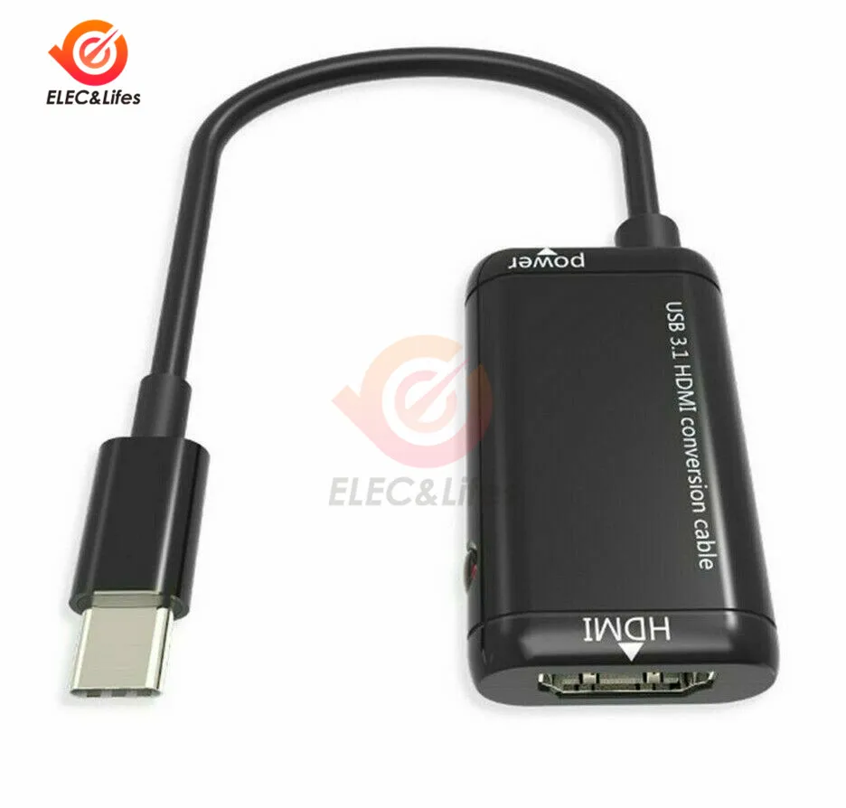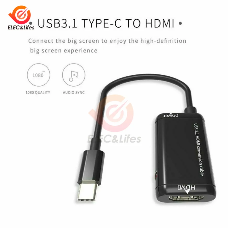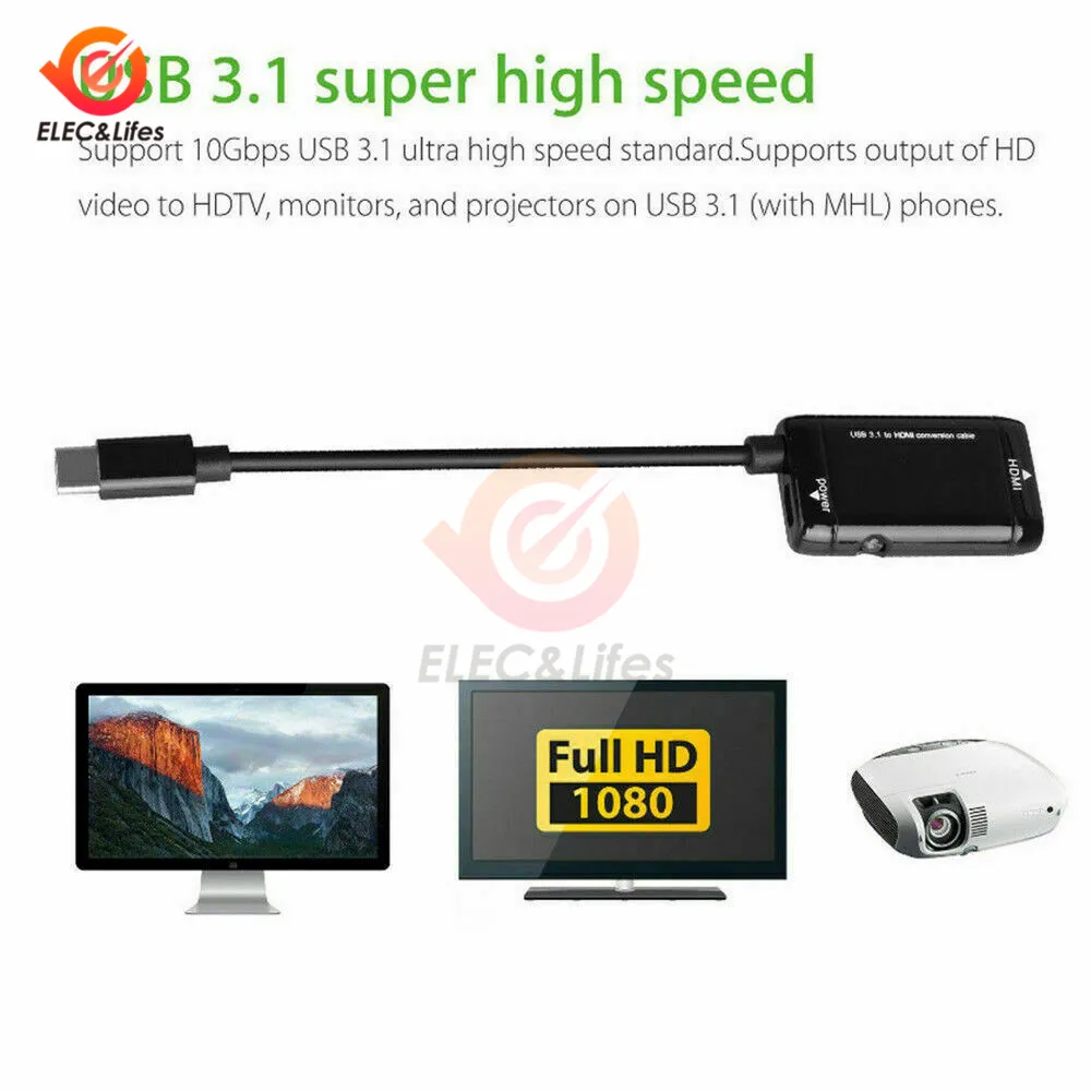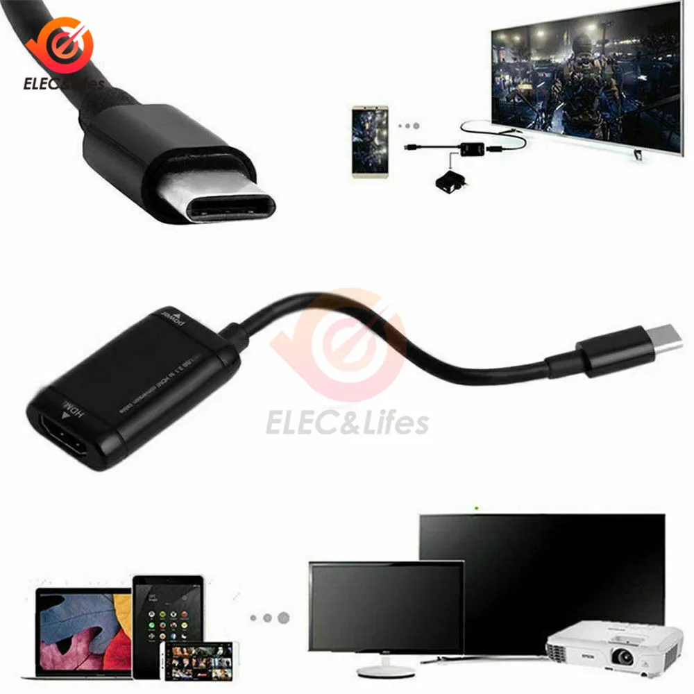 USB-C Type C to HDMI Female Adapter Connector USB 3.1 Cable For MHL Android Phone Tablet Black
