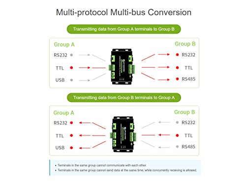 ➤【Multi-protocol Multibus Converter】USB/RS232/RS485/TTL converter is an industrial-grade isolated converter that supports USB/RS232/TTL to RS232/485/TTL, with built-in power supply isolation, digital isolation, and protection circuits like TVS diode
