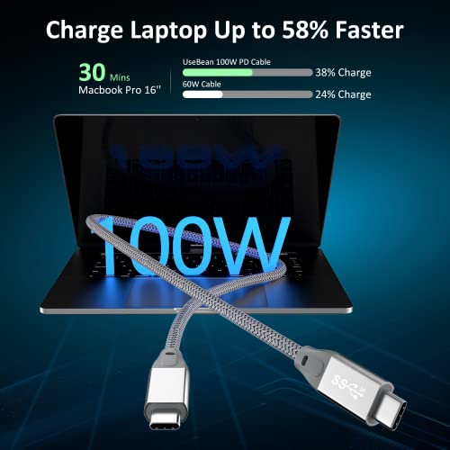 UseBean Cavo USB C a USB C 100W 1M (2 Pezzi), USB 3.2 Gen 2X2 20Gbps Trasferimento Dati USB Type-C PD Ricarica Rapida Cavo in Nylon,Cavi per Monitor Video 4K per Thunderbolt 3/4,Huawei P40 Pro/P30