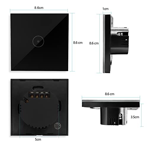 Installazione semplice: non è necessario un hub, è necessario un filo neutro, dimensioni della piastra a muro standard 86 x 86 x 39 mm. Il manuale di istruzioni ti guida attraverso una facile installazione passo passo, è necessaria una connessione Wi-Fi a 2,4 GHz;
