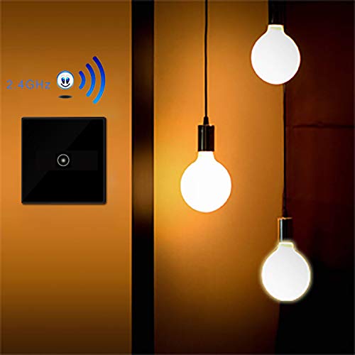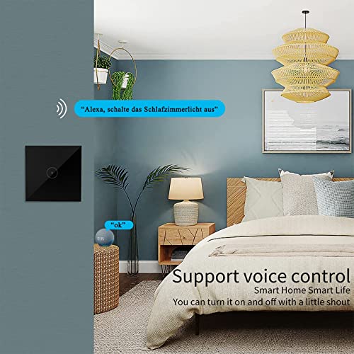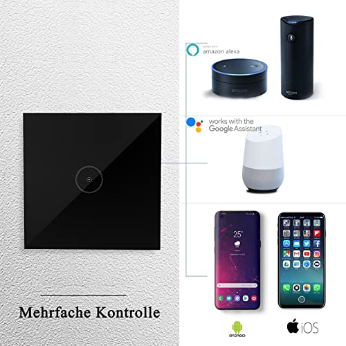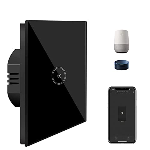 UseeLink, interruttore della luce intelligente WiFi, touch screen in cristallo, 1 gang, funziona con Alexa, Google Home, telecomando, timer, cavo neutro richiesto, nero (1 confezione)
